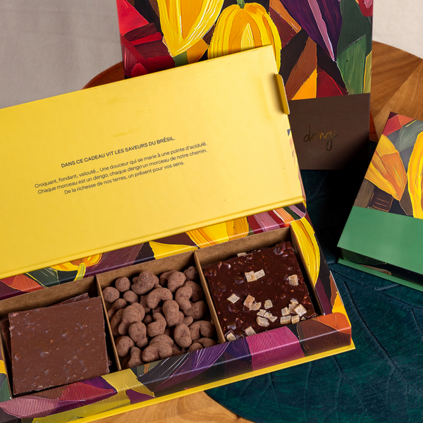 Plus que du cacao ou chocolat brésilien, Dengo est une marque à impact social et environnemental qui nous rassemble dans un monde généreux et équitable. Dengo supporte un réseau de petits et moyens producteurs de cacao de haute qualité qui soutiennent une agriculture consciente. Des personnes qui partagent des valeurs communes et croient à la préservation de la nature. Dès sa création, la marque s’est donnée
