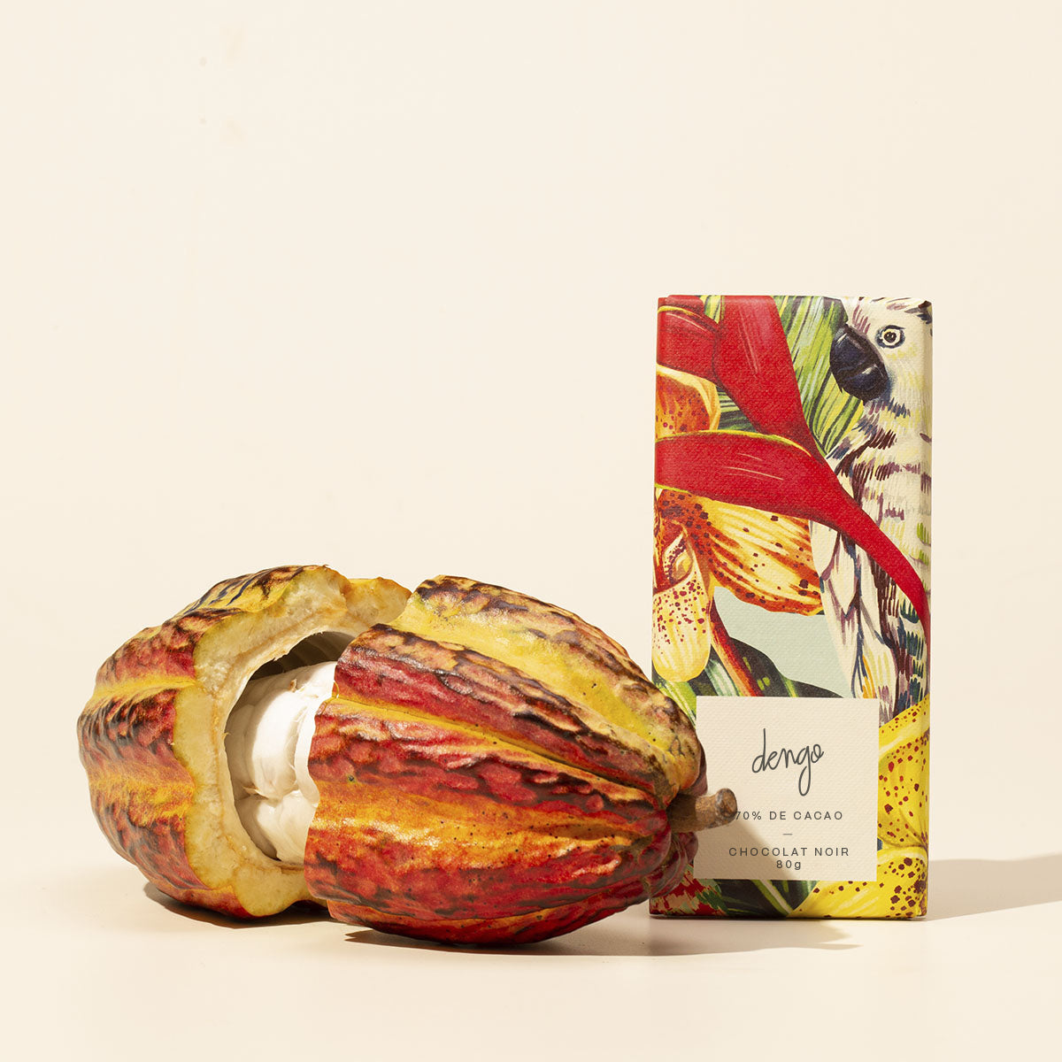Tablette de chocolat noir 70% de cacao cultivé par José Augusto Tourinho Dantas, Fazenda Baixa Alegre, Ilhéus - Bahia.