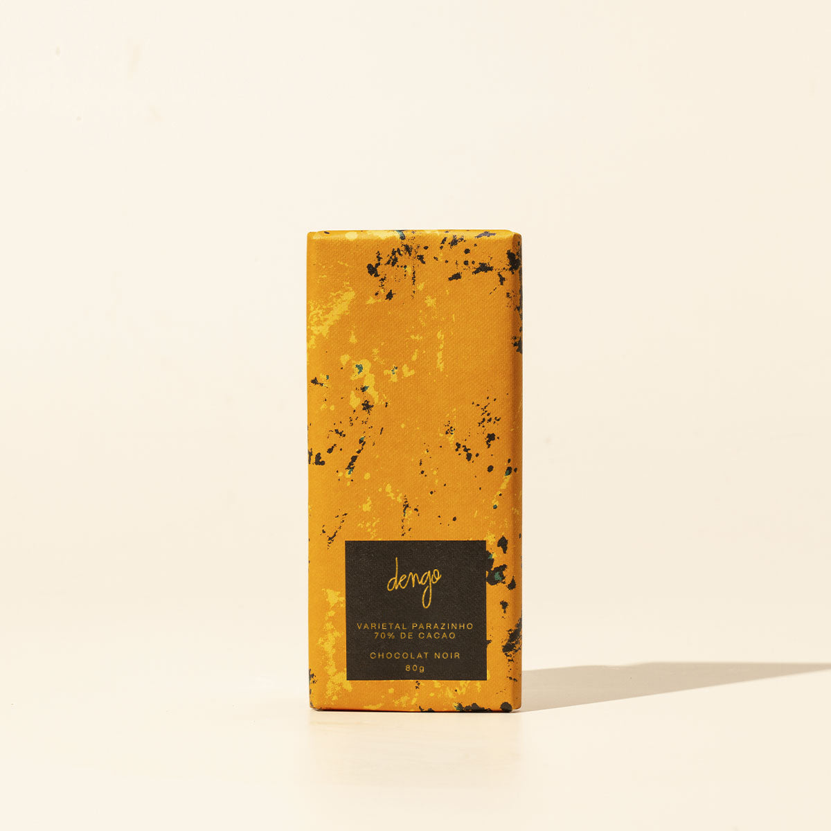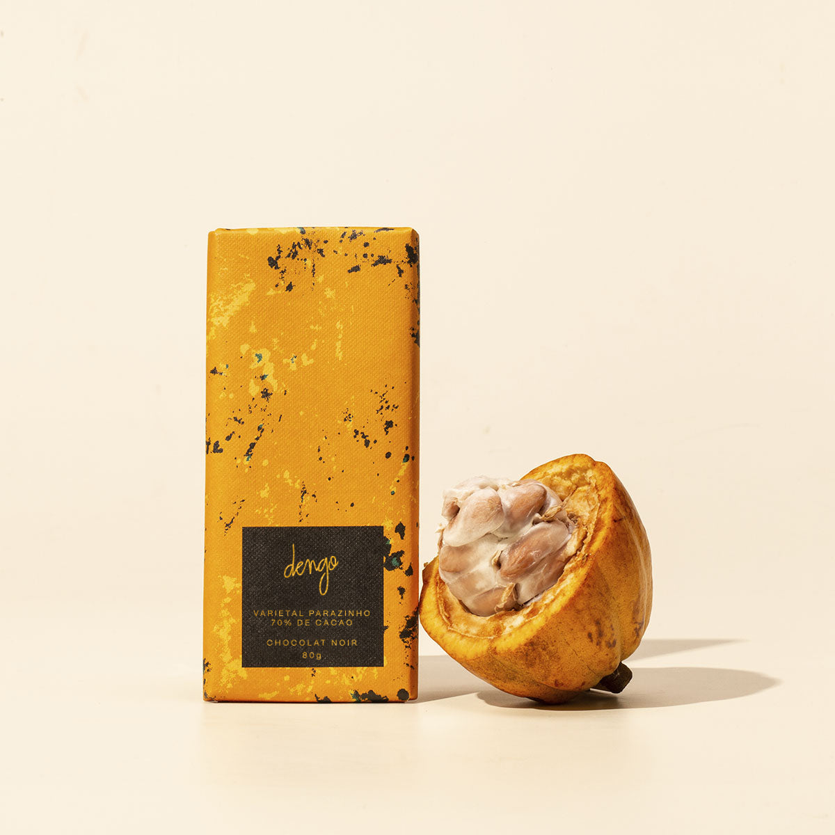 Tablette de chocolat noir 70 % pur Varietal Parazinho cultivé par Eleonora Kaurak Gedeon, Fazenda Venturosa - Floresta Azul, Bahia.